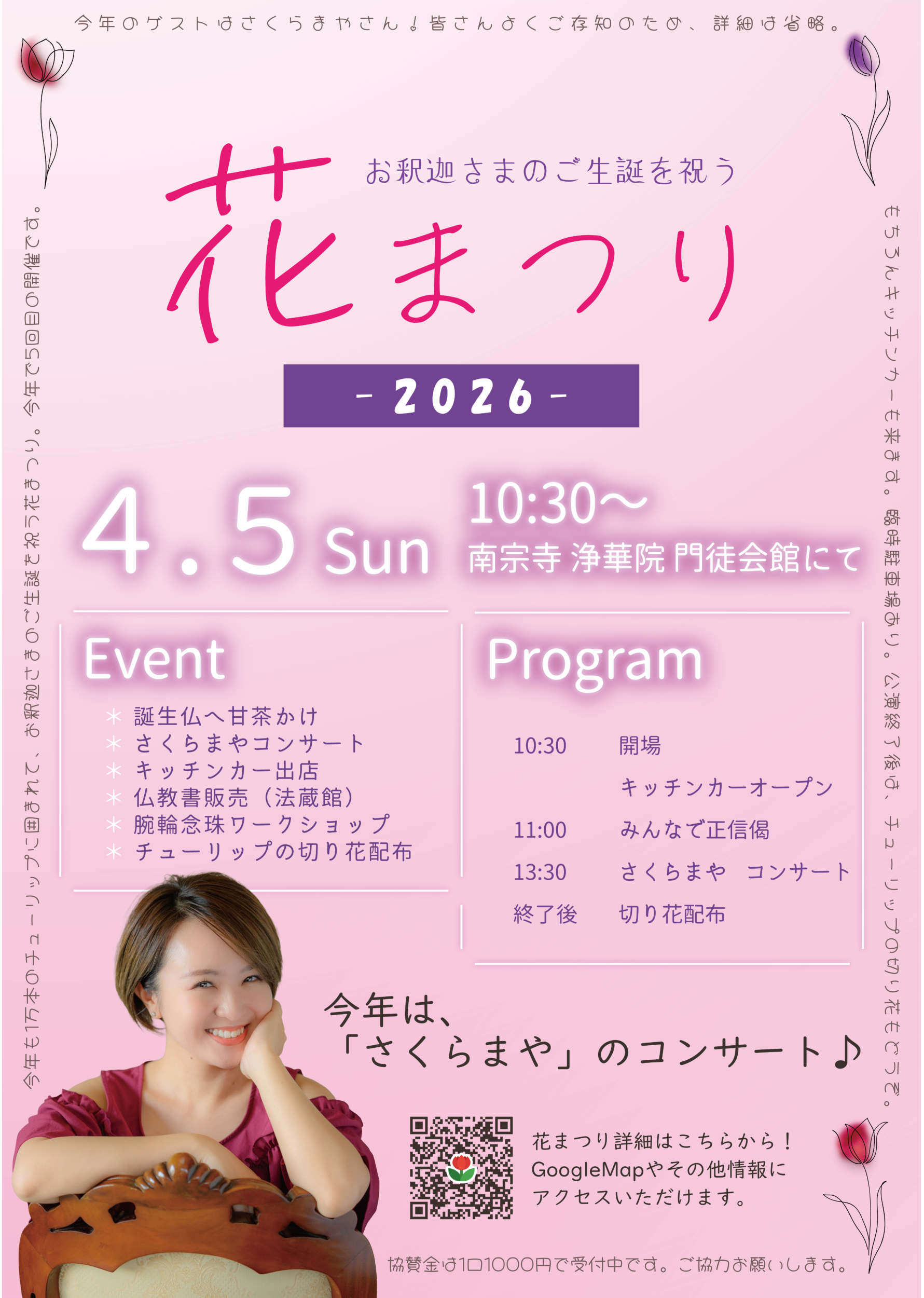 今年も1万本のチューリップに囲まれて、お釈迦さまのご生誕をお祝いしましょう!